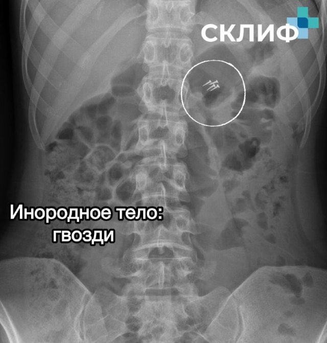 Врачи из Склифа показали самые необычные предметы, которые им приходилось извлекать из пациентов.На снимках - гвозди, украшения, наушники, а также случаи, когда люди проглатывали зубные коронки, ручки от ложек и даже куски свиного ребра.В Институте скорой помощи отметили, что каждый год в их больницы поступает десятки пострадавших, проглативших чужеродные объекты.