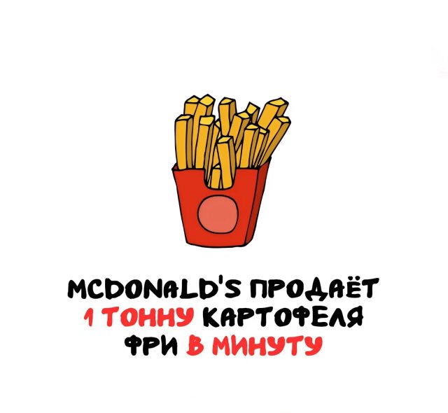 Факты, которые удивляют 14/01/2026 17:00 Где платят бутылками за метро? Сколько картошки фри улетает у McDonald’s за минуту? Какая тыква была самой тяжёлой в истории? Всё это — в свежей подборке. Главная / Картинки +4 Admin 0 151