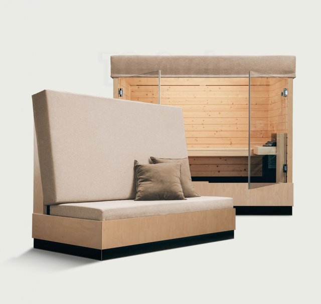 Немецкая компания Suda представила необычное решение для дома — компактную сауну, которая легко трансформируется в диван.
