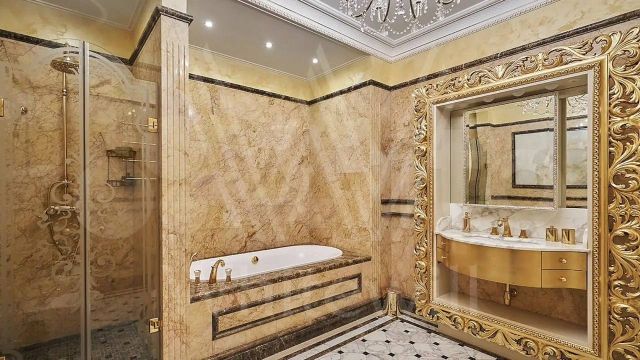 Контрасты жизни поражают: кто-то работает на благо семьи, живя от зарплаты до зарплаты, а кто-то может позволить себе роскошную квартиру за полмиллиона рублей в месяц. Конечно, такие апартаменты находятся в Москве: 174 квадратных метра на Арбате, покрытых золотом. Интерьер полностью соответствует статусу: итальянская мебель Cappelletti и Versace, изысканная лепнина, колонны и дизайнерские люстры. В жилом комплексе есть всё, чтобы даже не выходить за пределы здания — бутики, спортзал и ресторан. В таких условиях можно жить, не отрываясь от роскоши.