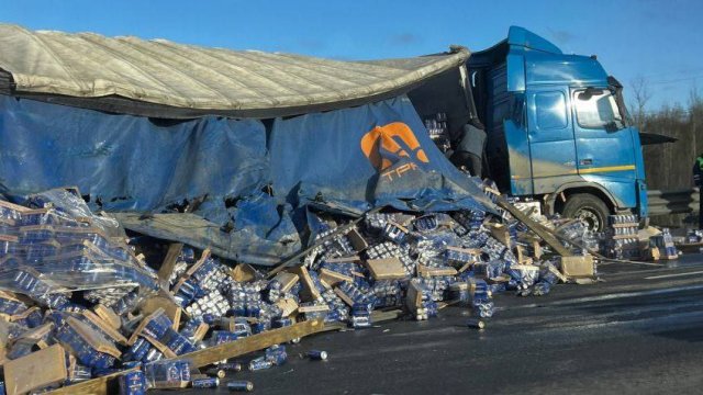 В Санкт-Петербурге произошла настоящая пивная трагедия: фура с пивом перевернулась, и сотни литров напитка оказались на дороге. Никто не пострадал, но события эти точно останутся в памяти горожан.