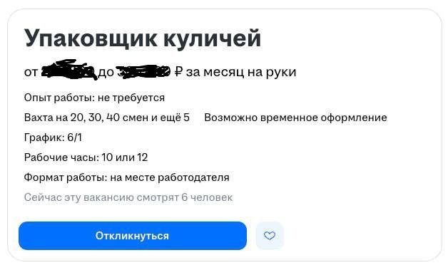 В Москве ищут героя — упаковщика пасхальных куличей. Что делать? Сортировать, маркировать, укладывать. Что дают? Бесплатную еду, комфортное жильё и зарплату (подробности на месте 👀). Звучит как временная мечта, если честно.