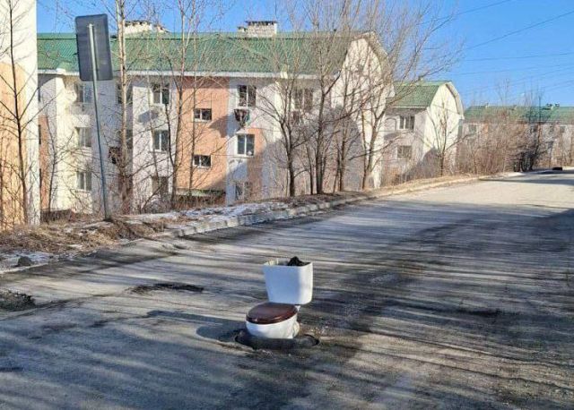 С первого взгляда кажется, что это странная инсталляция художника. Но это не совсем так. Жители Приморского края решили креативно привлечь внимание местных властей, закрыв открытый коллектор на проезжей части унитазом. Перфоманс сработал: власти обещали разобраться, но отметили, что крышка люка в этом месте постоянно пропадает.