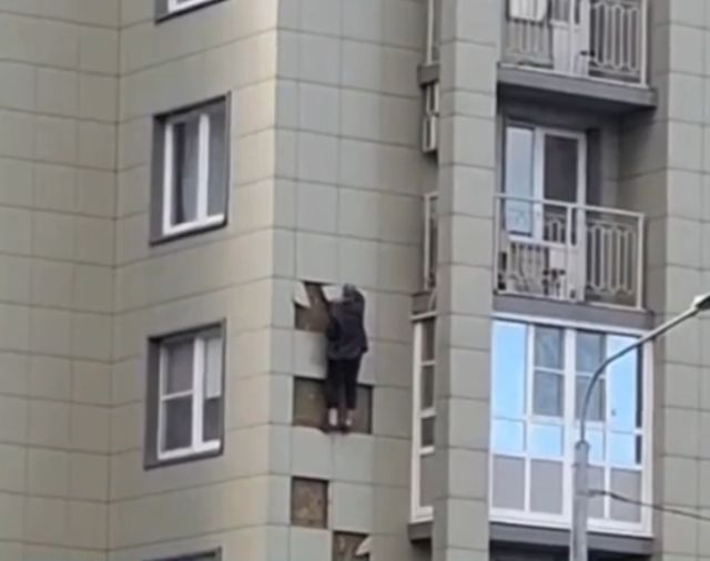 Пьяный парень полез по стене на седьмой этаж, ломая фасадные плитки, чтобы извиниться перед своей «Мэри Джейн». И главное — добрался живым! Вот она, романтика по-русски. 🍷