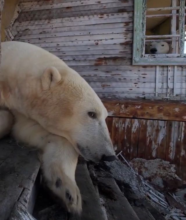 На острове Колючин с дрона сняли семейство белых медведей. Когда-то здесь работала метеостанция, а теперь это их личные апартаменты. Судя по кадрам, мишки устроились знатно — настоящий «уютный домик у моря».