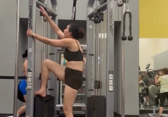 Пока мы лежим на диване, девушка жмёт в зале такие упражнения, что смотреть даже тяжело. Но, видимо, штука реально рабочая.