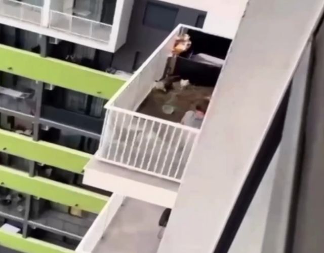 Жительница новостройки сделала из своего балкона настоящий птичий двор. Курочки сидят в клетке, есть кормушки и даже мини-вольер. Сама хозяйка умиляется, но соседи явно не в восторге — запах и круглосуточное «ко-ко-ко» сводят их с ума.