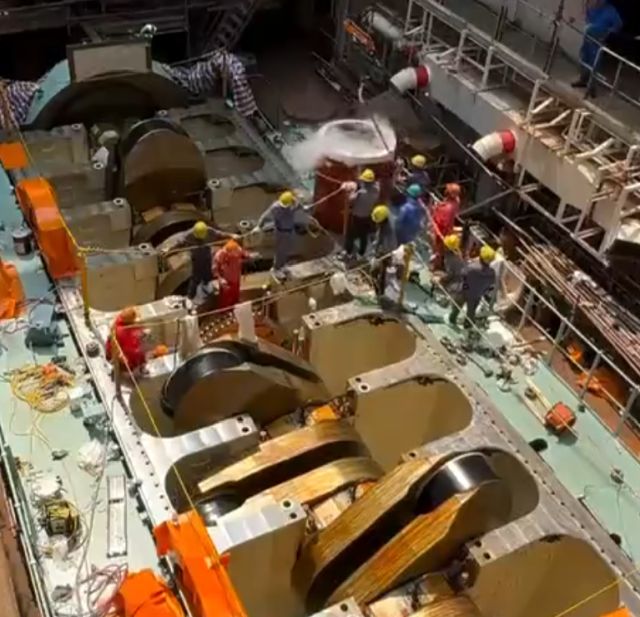 На первый взгляд кажется, что это мультик с суперреалистичной графикой — маленькие человечки суетятся, что-то крутят и чинят. А на деле так собирают настоящий корабельный двигатель. Настоящее инженерное волшебство!