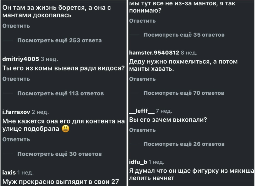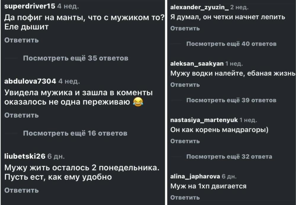 Мужику нужно опохмелиться.. Это понятно, но она сама неправильно ест, татарка доморощенная. Манты и Буузы ясен пень едят руками, но не лупит сразу как она, а сначала надкусывают, выпивают бульон из него, и только потом доедают дальше