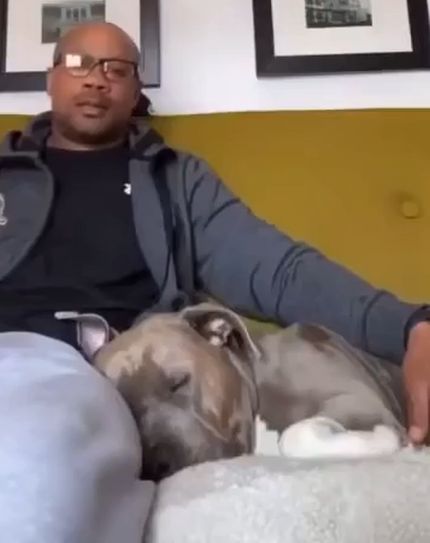 Собака дремлет и не реагирует на разговор хозяина, пока тот не произносит кодовое слово.