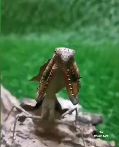 Малазийский листовидный богомол имитирует рот с зубами, чтобы отпугивать хищников