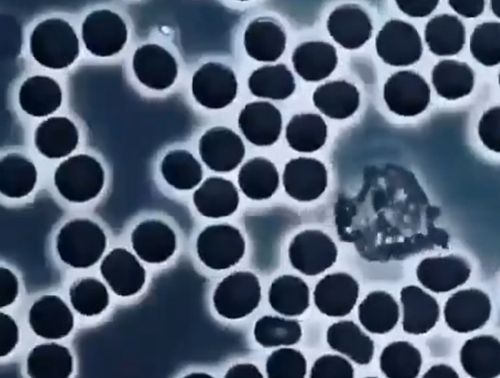 Белое кровяное тельце блуждает среди красных кровяных телец в поисках вредных орагнизмов