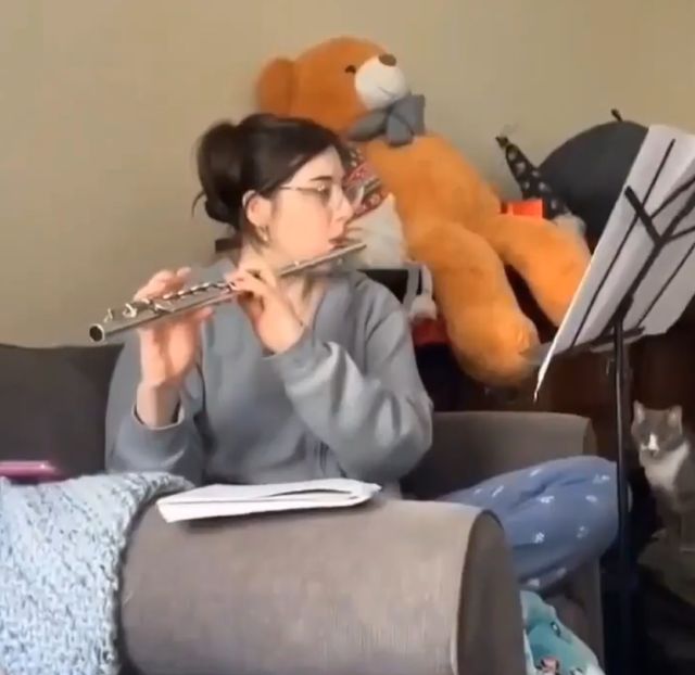Она — талантливая музыкантка. Он — пушистый вредина. Каждый раз, как она начинает репетировать, кот устраивает концерт в два раза громче. У кого нервы крепче — тот и победил. 🐱🎶