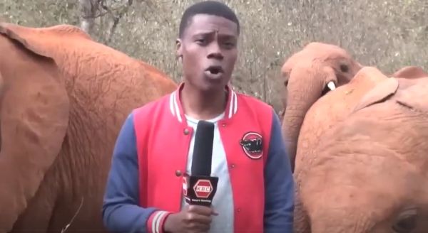 Кенийский репортер пытается сохранить невозмутимое выражение лица