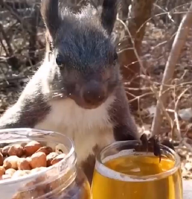 Перед белкой встал вопрос жизни и смерти: орехи или пиво? Вроде бы очевидно... но, судя по видео, этот день для белки был не из легких. 🐿️🍺