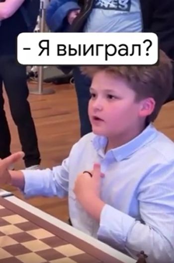 В соцсетях набрало популярность видео с реакцией 10-летнего шахматиста на победу над международным мастером с рейтингом около 2400! Мальчишка не мог поверить, что выиграл, и несколько раз переспросил об этом!