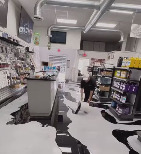 Креативная покраска пола в магазине красок