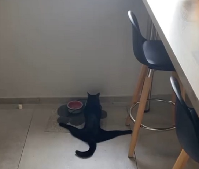 Кошка-балерина делает шпагат даже за обедом 🐾