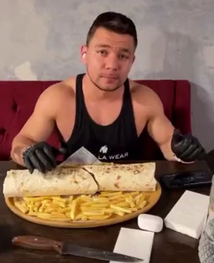 За поедание огромной шаурмы весом почти 1,5 килограмма за 20 минут.