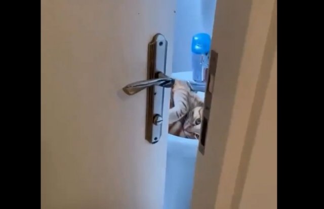 Этот рыжий кекс с детства считал раковину своим законным лежбищем. И всё бы ничего, но кот вырос... а вот сантехника осталась прежней. Теперь это выглядит как уровень «кошачьего тетриса». Уютно? Ну... допустим.
