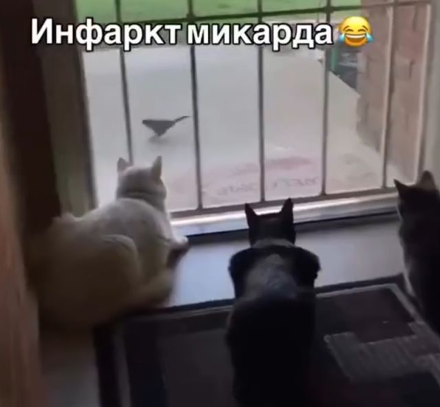 Три котика сидели и следили за птичкой, максимально сосредоточенные… Пока пудель не решил устроить им маленькую подлянку. Коты подпрыгнули так, будто у них Wi-Fi отключили.